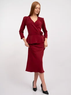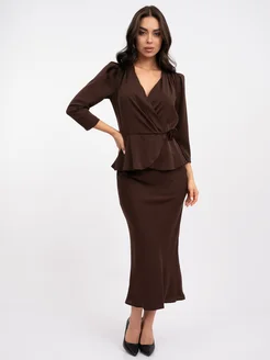 Платье миди вечернее с баской