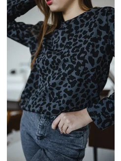 Лонгслив серый леопардовый