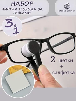Салфетка для очков микрофибра и щетка для очков очищающая
