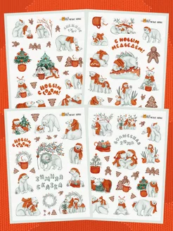Наклейки для скрапбукинга Новогодние мишки 87 штук