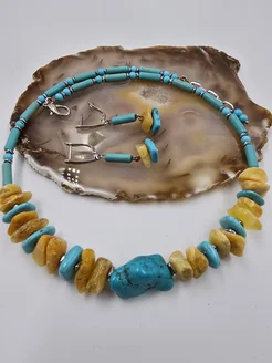 Колье янтарь, говлит, бирюза