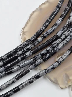 Обсидиан снежный 13х4мм. трубочки