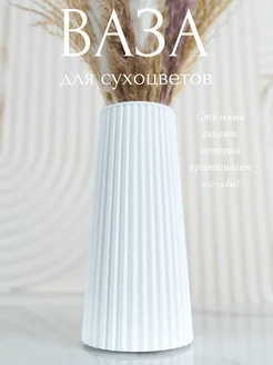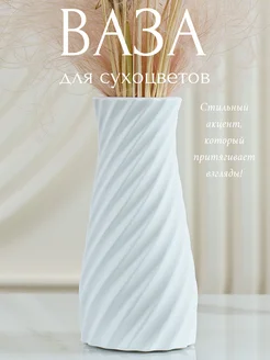 Белая декоративная ваза для сухоцветов из гипса, 18 см
