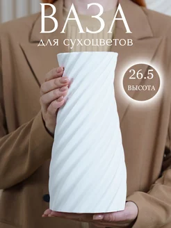 Ваза для сухоцветов гипсовая белая, большая 26.5 см