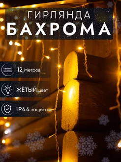 Гирлянда бахрома уличная 12 метров желтая IP 44