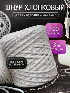 Шнур хлопковый для рукоделия и макраме 3 мм 100 метров
