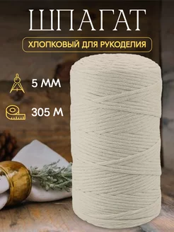 Шпагат хлопковый 5 мм 305м Шнур для рукоделия и макраме