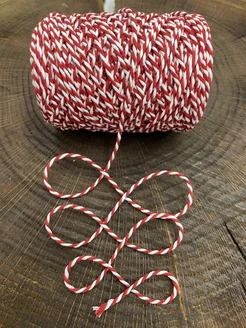 Веревка для подарков 101м. Шпагат, бечевка бело-красная
