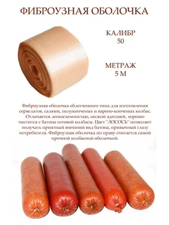 ФИБРОУЗНАЯ ОБОЛОЧКА КАЛИБР 50 ДЛЯ КОЛБАС, 5М