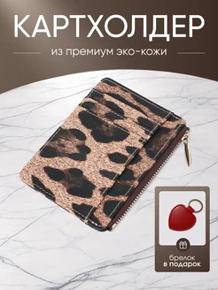 Картхолдер леопардовый для карт мини кошелек двусторонний