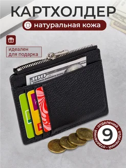 Картхолдер двусторонний из натуральной кожи мини кошелек