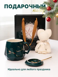 Кружка с крышкой, ложечкой и салфеткой