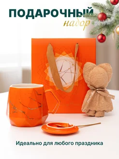 Кружка с крышкой, ложкой и салфеткой