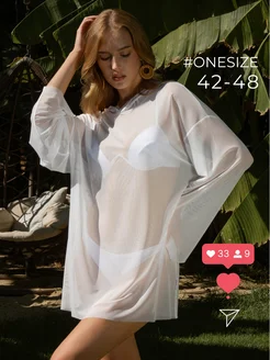 Туника пляжная оверсайз с капюшоном, накидка на купальник