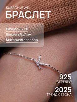 Браслет серебряный буква z с фианитами серебро 925
