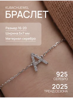 Браслет серебряный с буквой А