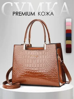 Сумка темно-коричневая средняя тоут кожаная через плечо