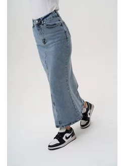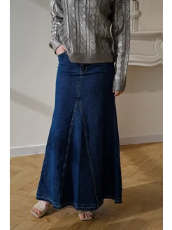 Юбка джинсовая макси в пол без разреза