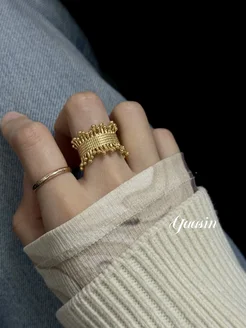 Кольцо бижутерия крупное золотистый