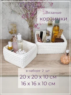 Корзины для хранения вязаные квадратные, набор 2 шт (M+L)