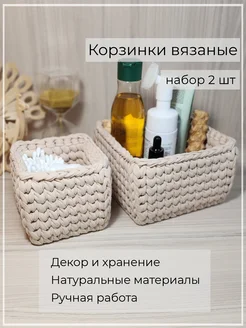 Корзины для хранения вязаные квадратные, набор 2 шт (S+M)