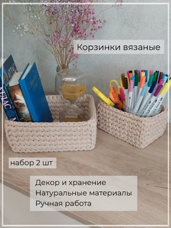 Корзины для хранения вязаные прямоугольные, набор 2 шт (P)