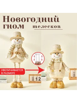 Фигурка Новогодний гном Снеговик на телескопических ножках