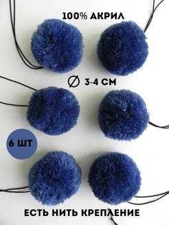 Помпоны для рукоделия шапок творчества одежды синие 7-8 см