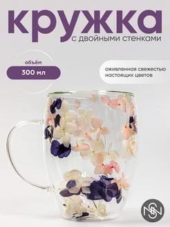 Чашка с двойными стенками с цветами в воздушной прослойке