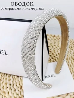 Ободок для волос блестящий со стразами и жемчугом