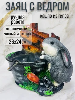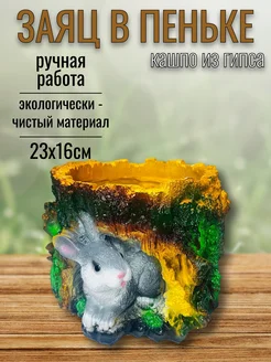 Кашпо для цветов гипсовое большое "Заяц в пеньке"