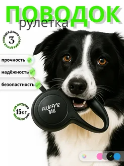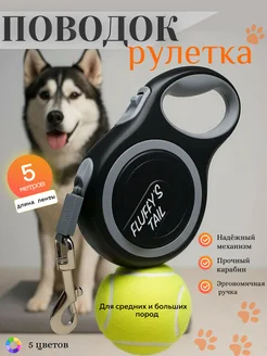 Поводок рулетка 5 м черная, для собак средних и мелких пород