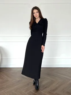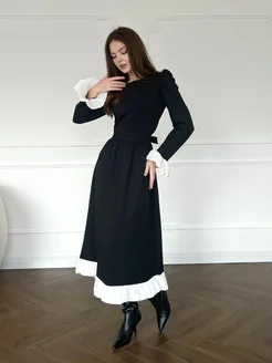 Платье с белой сборкой миди