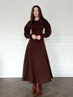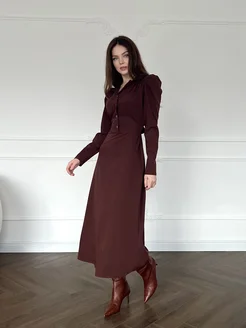 Платье с английским воротником шоколадное