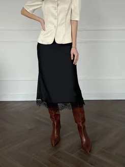 Юбка с кружевом из шелка черная