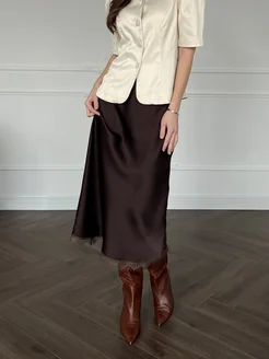 Юбка с кружевом из шелка коричневая
