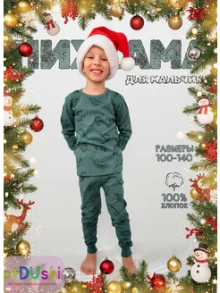 Пижама детская темно-зеленая с динозаврами