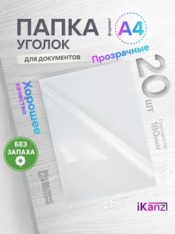 Папка уголок А4 прозрачная, 20 штук, 180 мкм