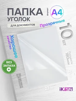 Папка уголок А4 прозрачная, 10 штук, 180 мкм