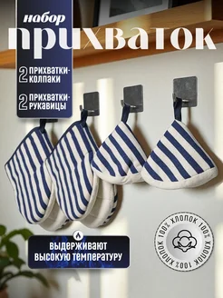 Прихватки кухонные набор две рукавицы и 2 колпачка