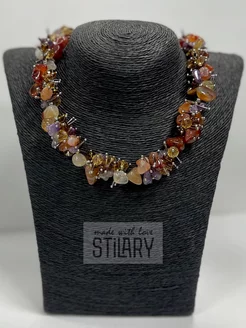 Бусы - Колье из Сердолика и Аметиста натуральный камень