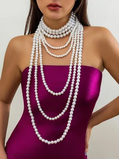 Длинное многослойное колье жемчуг 8 слоев y2k