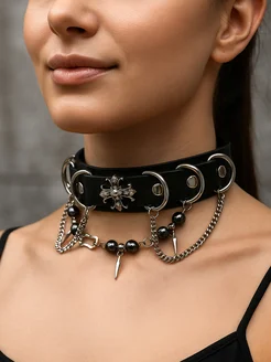 Кожаный готический чокер крест Chrome hearts с шипами