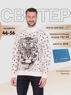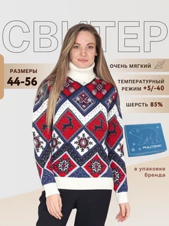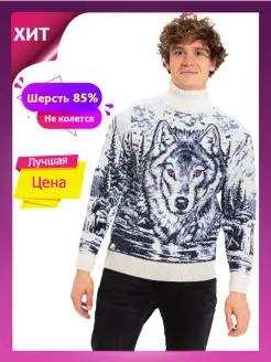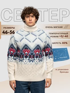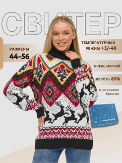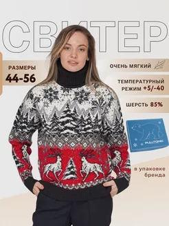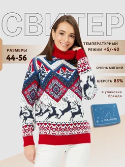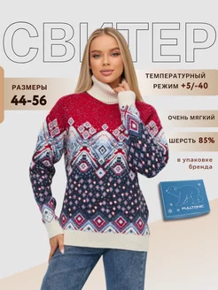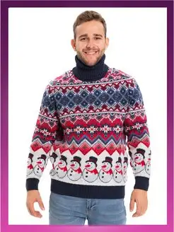 Свитер с горлом теплый вязаный новогодний парный кофта
