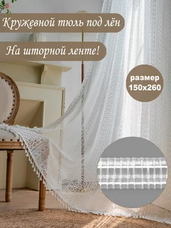 Вязаный тюль-штора кружевной под лен бохо 150х260 см