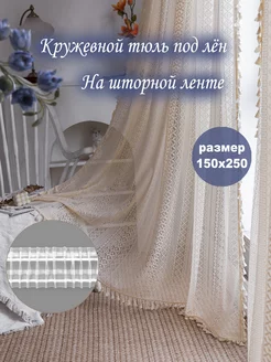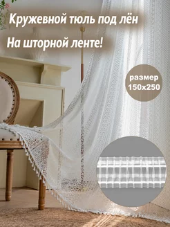Тюль-штора вязаный кружевной под лен бохо 150х250 см