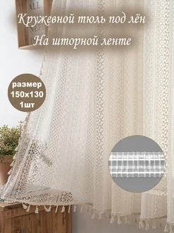 Тюль-штора вязаный кружевной под лен бохо 150х260 см