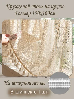 Вязаный тюль-штора кружевной на кухню бохо 150х160 см