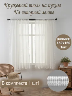 Вязаный тюль-штора кружевной на кухню бохо 150х160 см белый