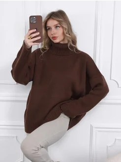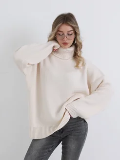 Свитер оверсайз теплый вязаный с горлом